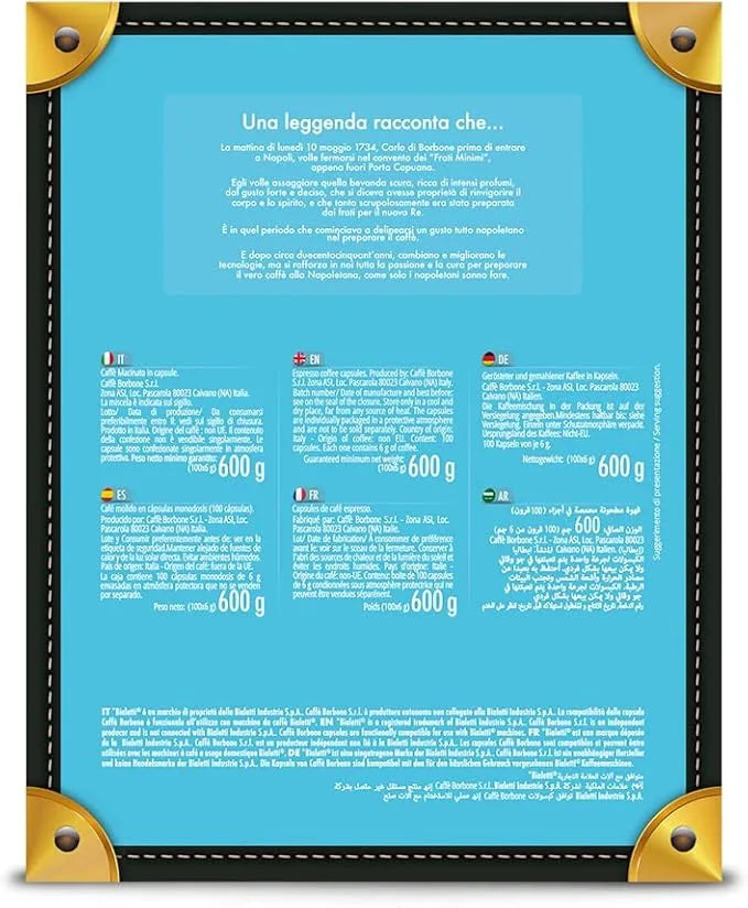 La Miscela Blu Borbone è una delle più amate dagli appassionati del vero espresso napoletano: il suo equilibrio perfetto tra corpo, aroma e rotondità la rende ideale per chi cerca un caffè né troppo forte né troppo leggero, ma semplicemente… perfetto.