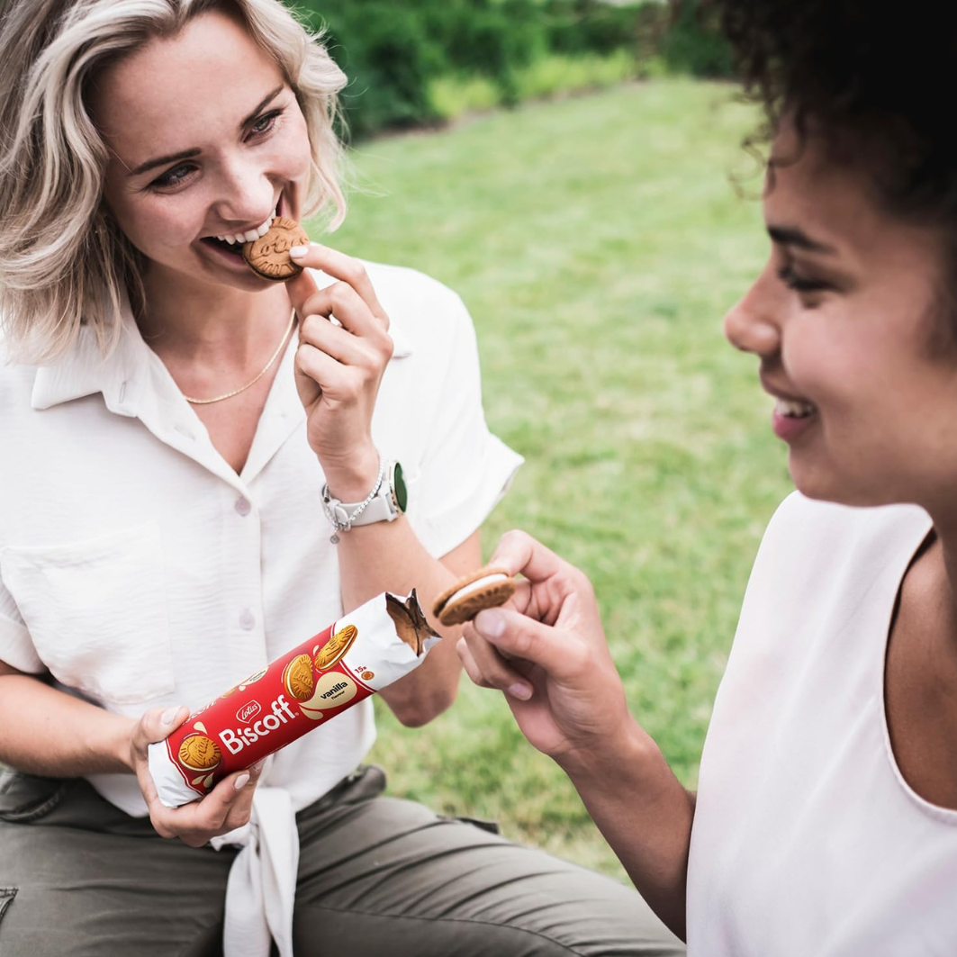 Biscotti Lotus Biscoff croccanti con ripieno alla vaniglia, dal gusto dolce e avvolgente.